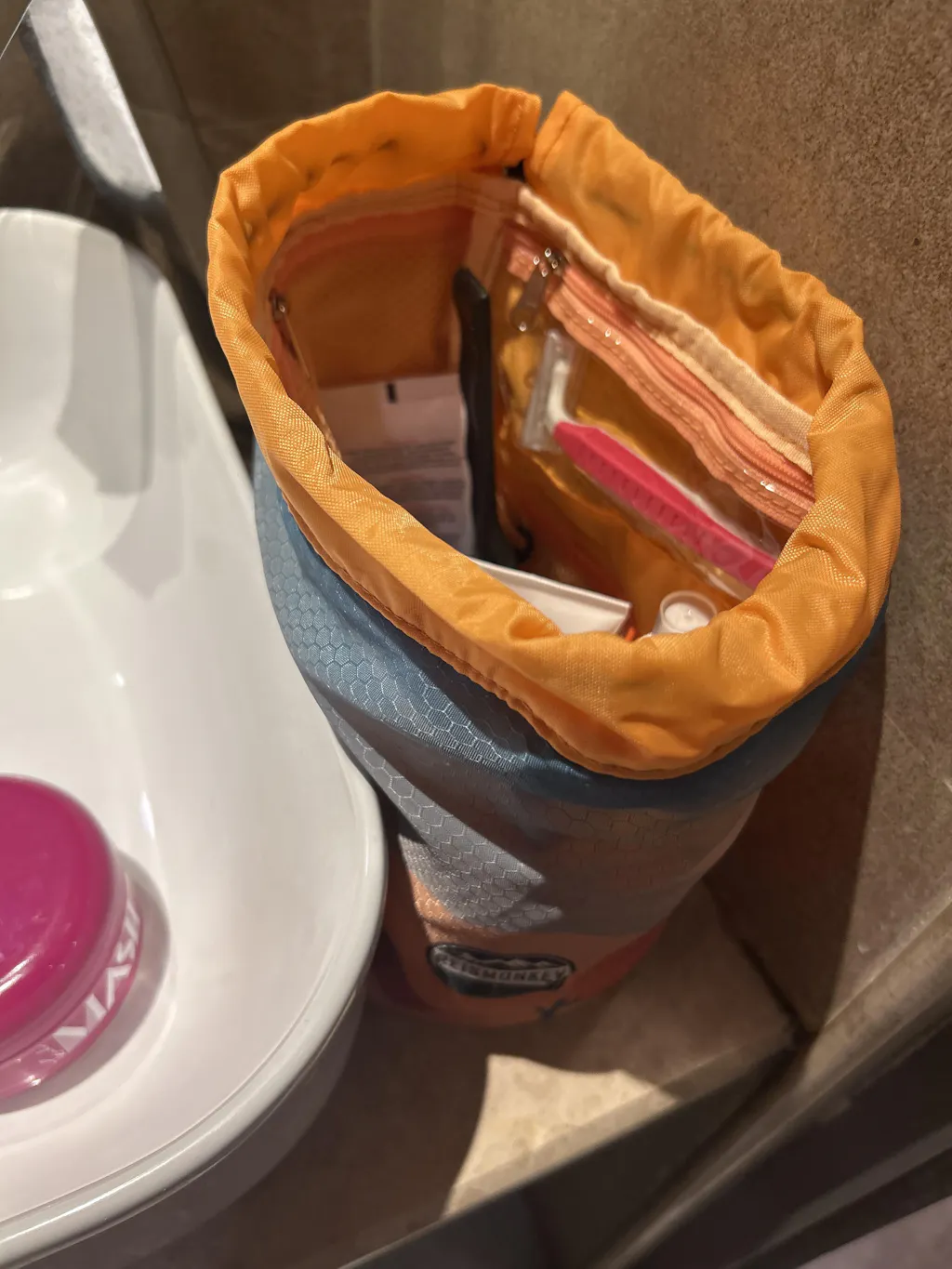 Een toilettas met haak was mij al niet onbekend maar nu kan alles recht op staan zonder dat het lekt cq leegloopt helemaal super👍🏻👍🏻👍🏻