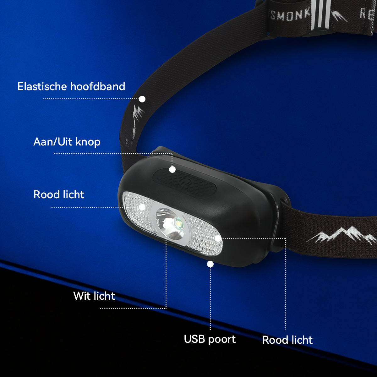 Met de verstelbare hoofdband is deze hoofdlamp voor ieder hoofd geschikt, zelfs voor kinderen. Fijn om te gebruiken tijdens wandelingen, trektochten, avond- en nachtwandelingen, nachtsafari, bergbeklimmen, kamperen en meer.