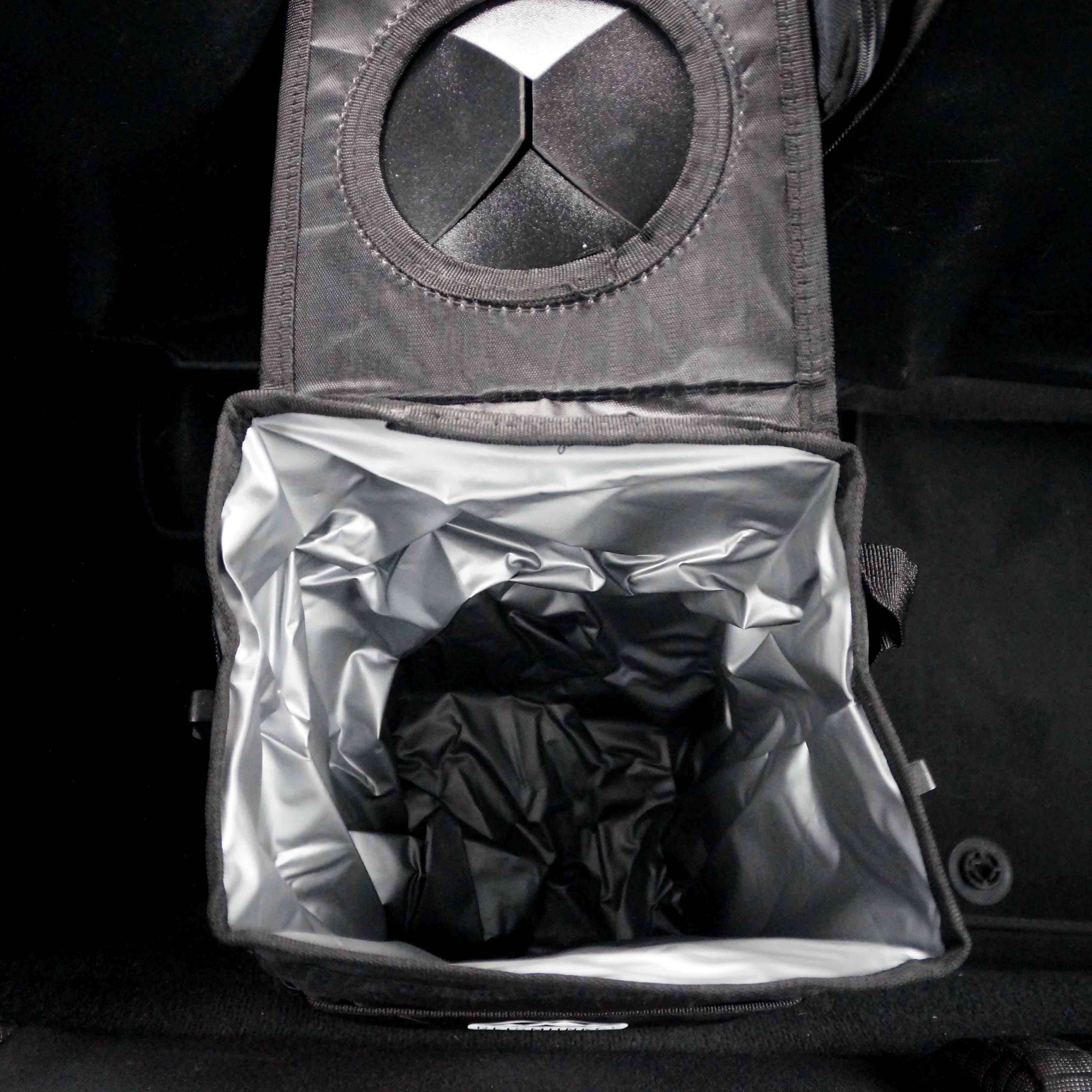 De prullenbak paste helaas niet om onze middenconsole, maar wel om de stoelen en dat werkt prima. Het hangt nu standaard in de auto. De rubberen opening is ideaal: geurtjes blijven binnen, het blijft netjes gesloten, maar je kunt er toch snel afval in doen. De stevige, kwalitatieve bouw is ruim genoeg voor allerlei afval en lijkt tot nu toe lekvrij. In de zijvakjes bewaar ik schone afvalzakjes, wat erg handig is. Iets aan de prijzige kant, maar voor wie zijn auto graag netjes en georganiseerd houdt, is dit echt een aanrader.