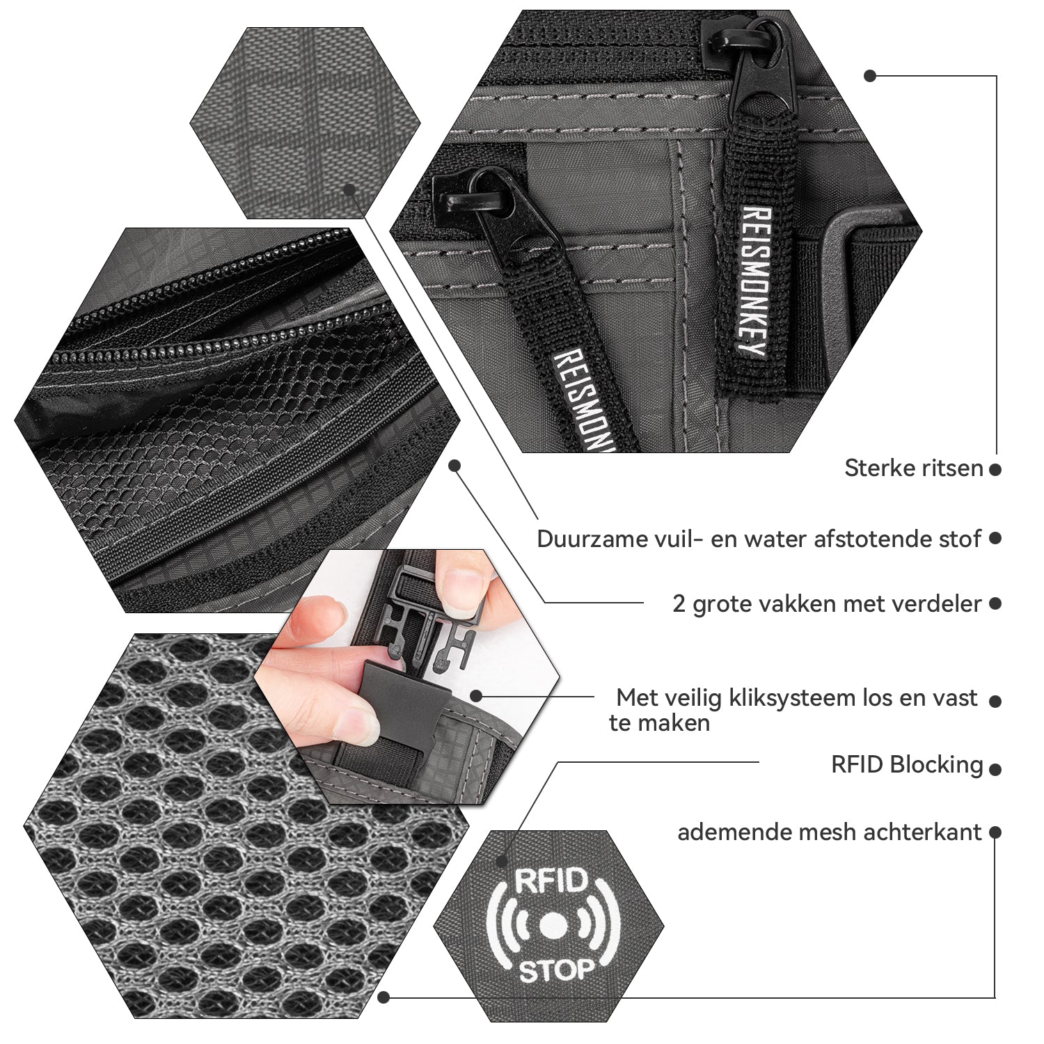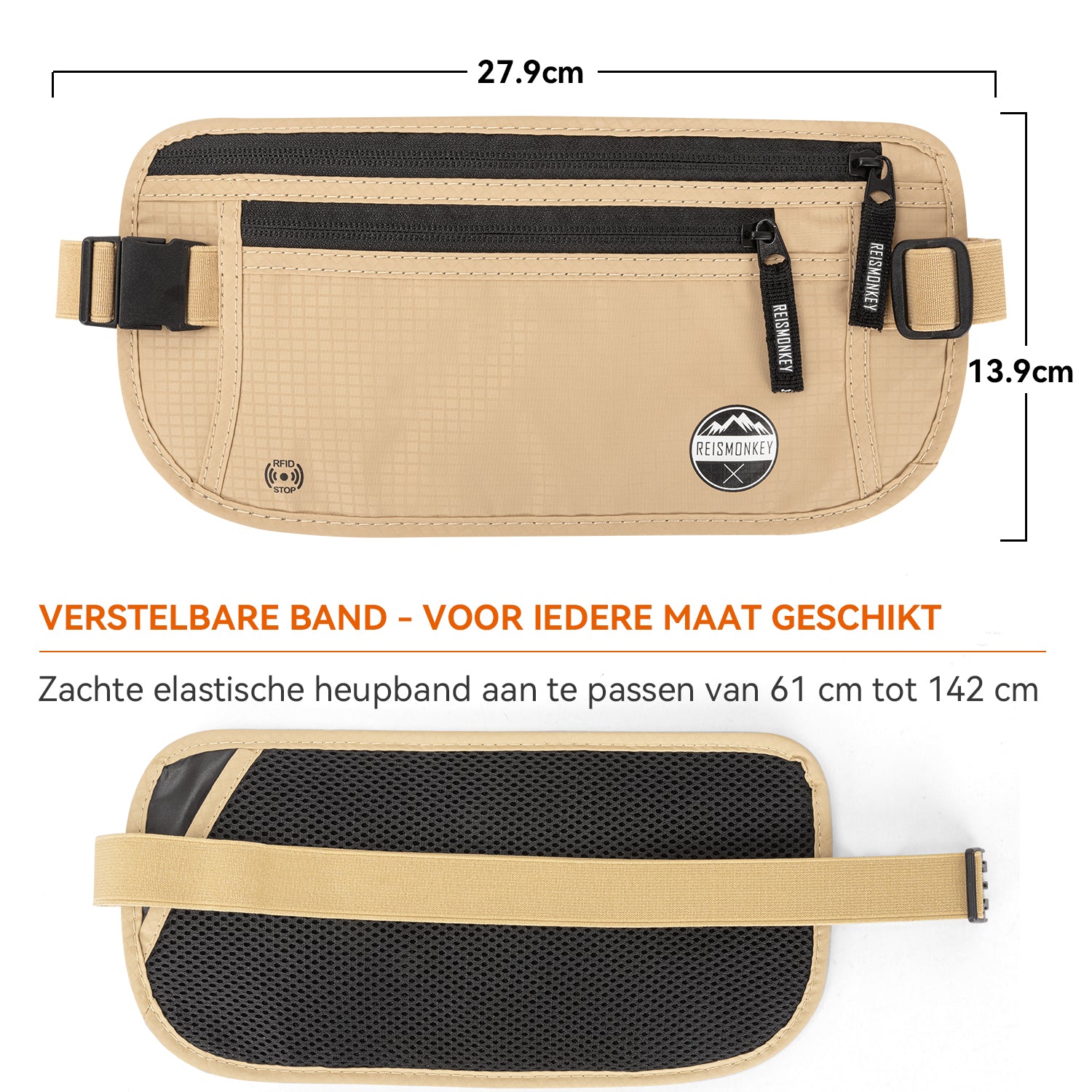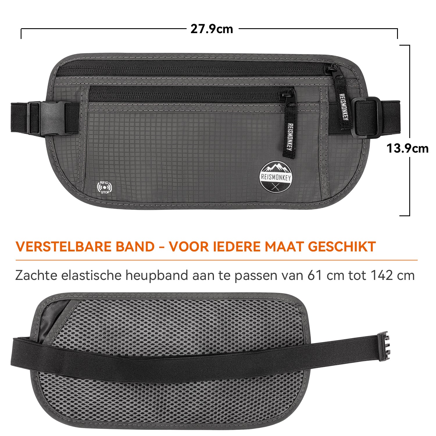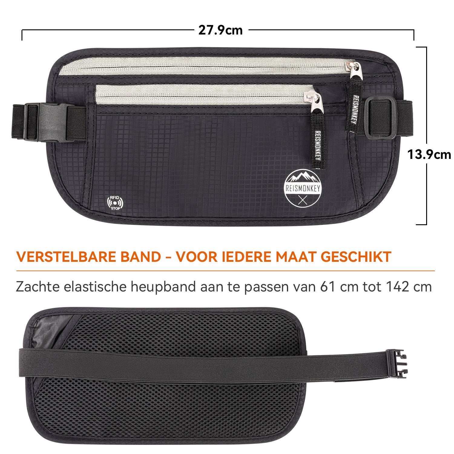 Tijdens het reizen wil je je waardevolle spullen zo veilig en onopvallend mogelijk meenemen, zodat je met een veilig en ontspannen gevoel reist. Tegelijkertijd wil je er wel altijd snel bij kunnen. Met de Moneybelt RFID van Reismonkey reis je veilig en houd je je belangrijkste items veilig en buiten bereik van zakkenrollers.