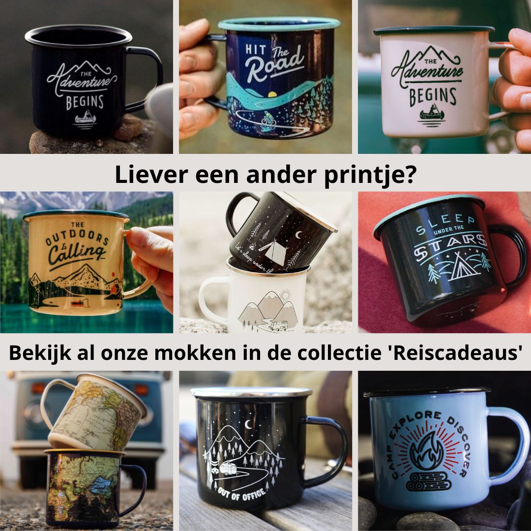 Houd jij ook van een heerlijke kop koffie of thee? Met deze gave Emaille Mok heb jij vanaf nu altijd iets waar je tijdens je reis uit kunt drinken!