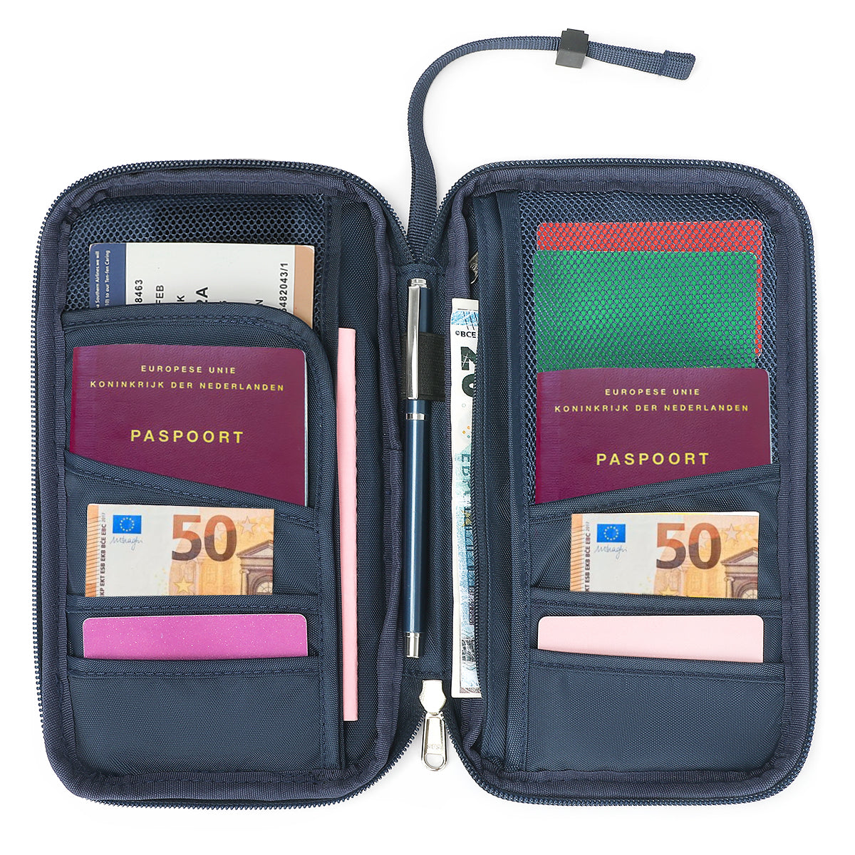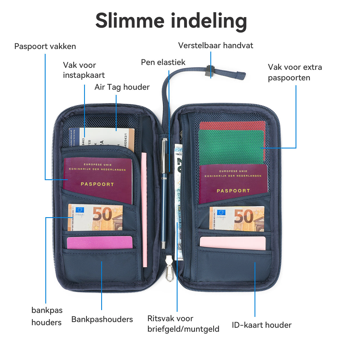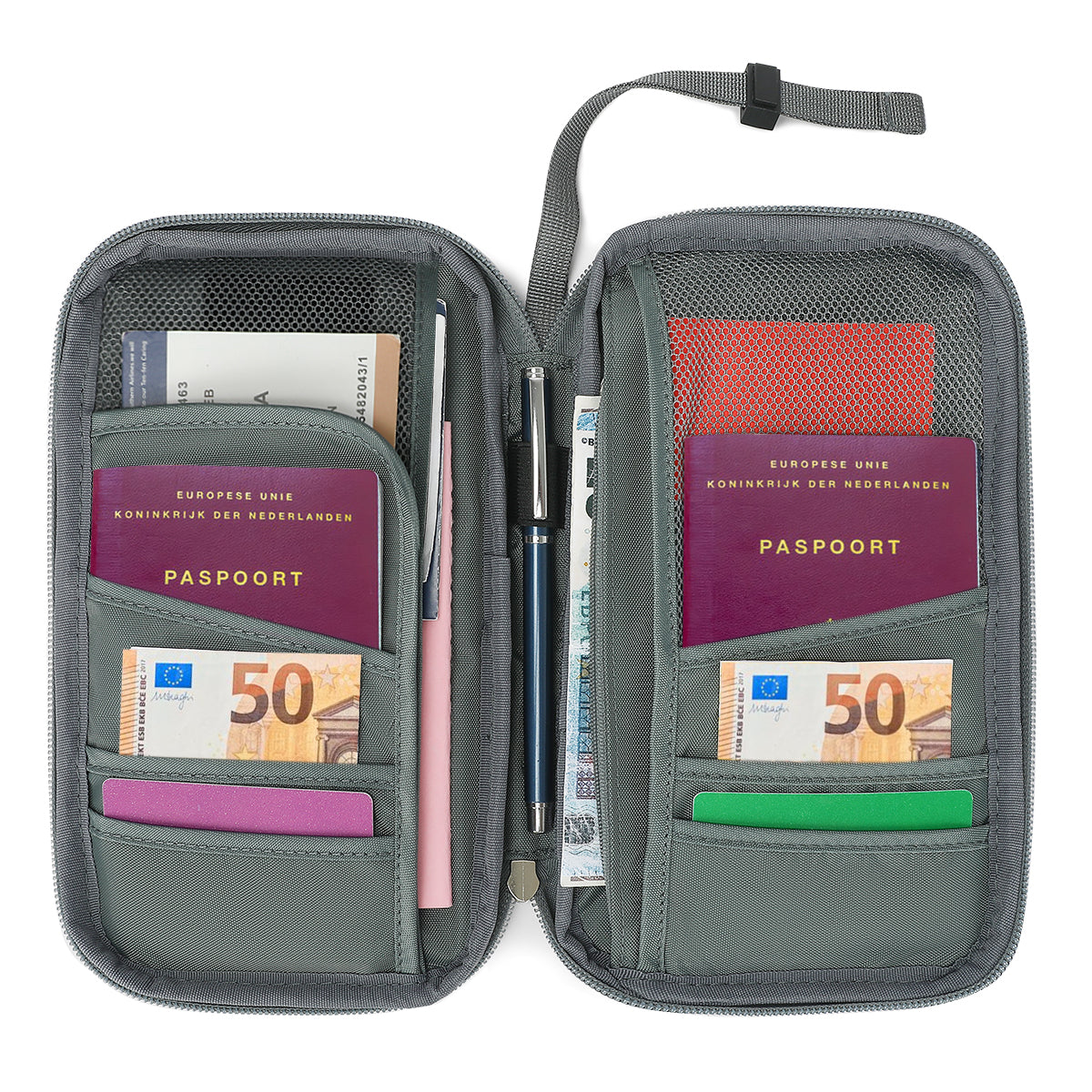 Alles overzichtelijk in één handige reisportemonnee!