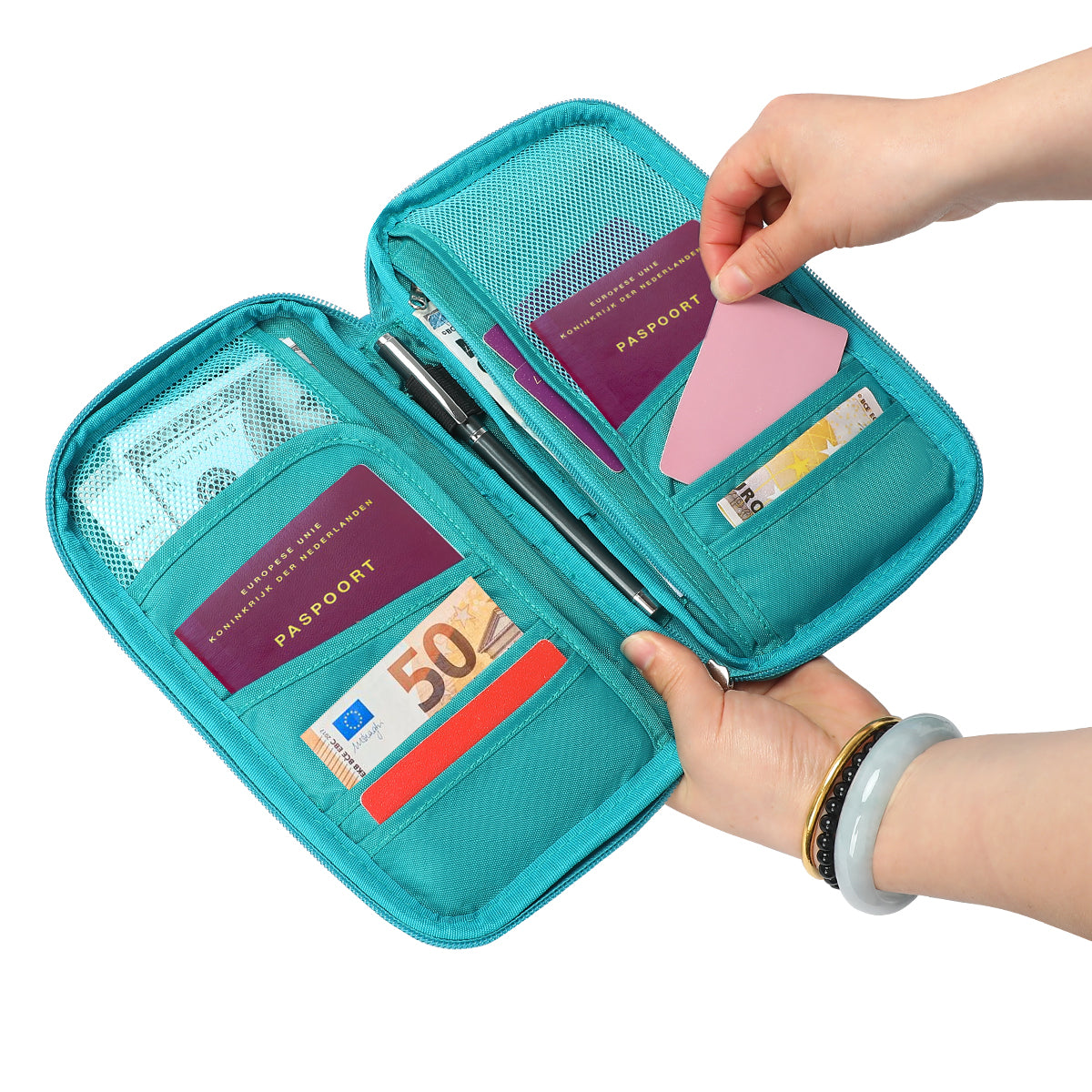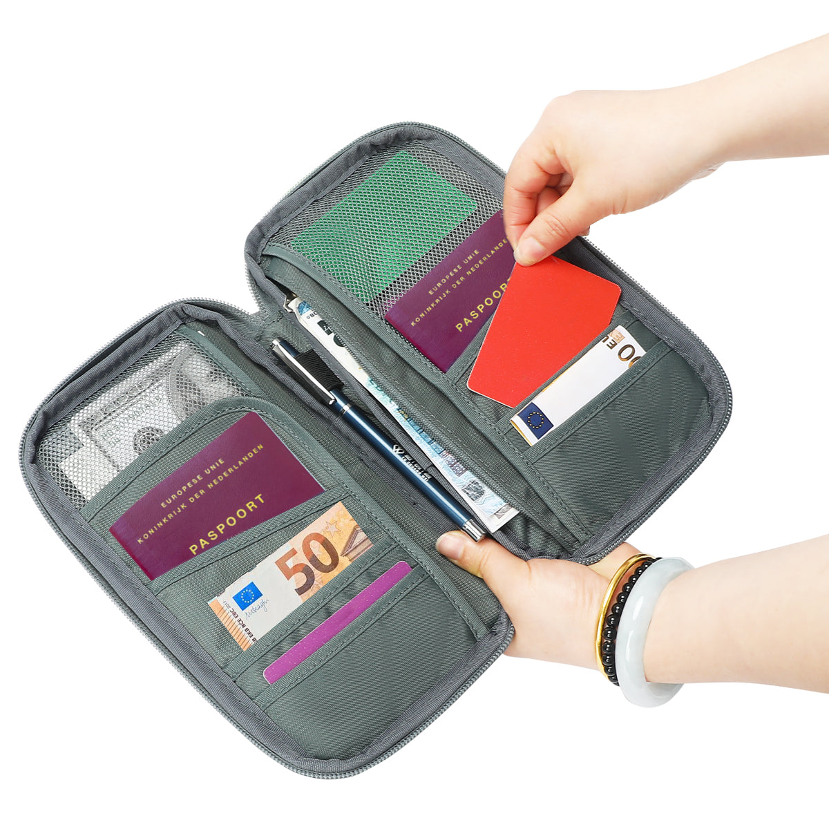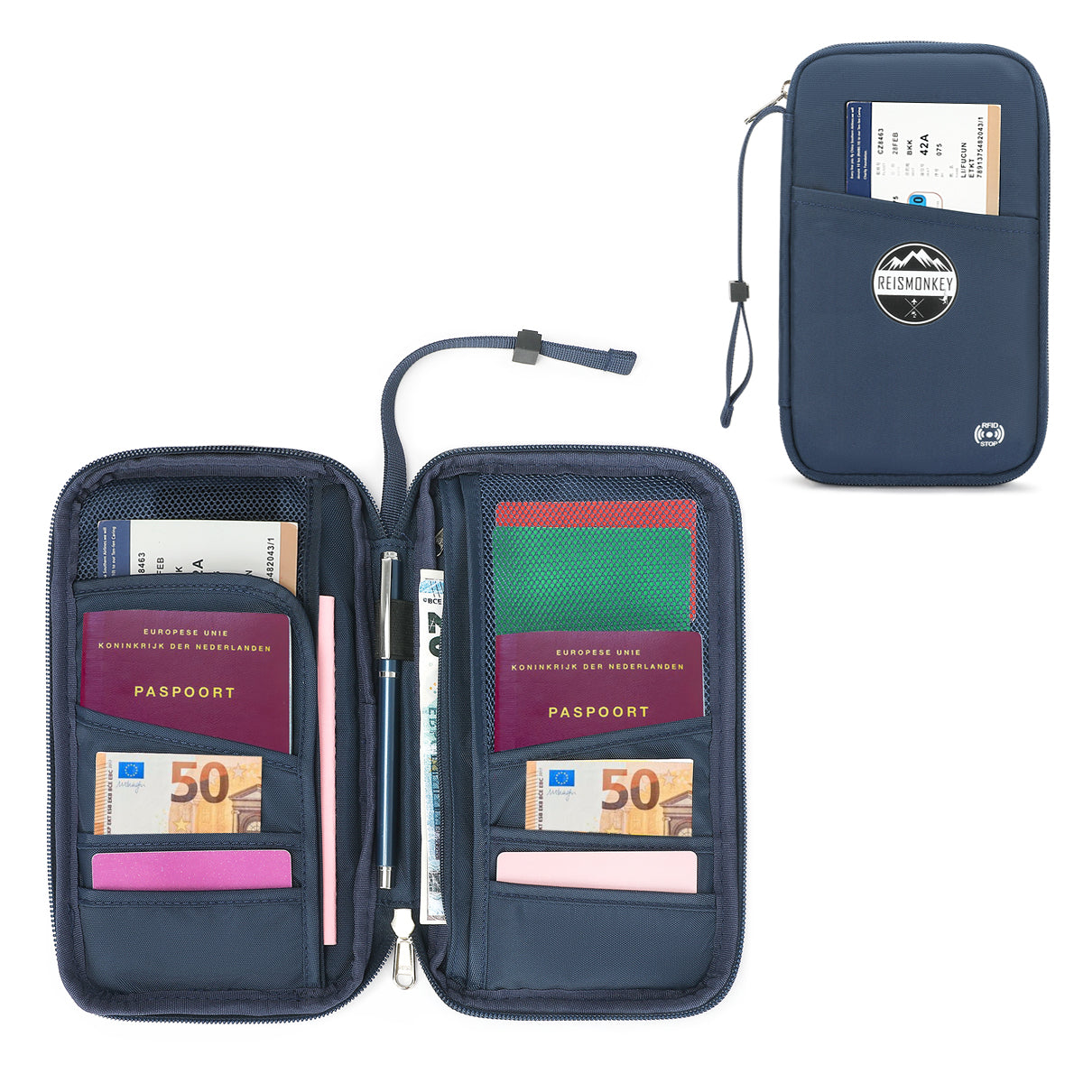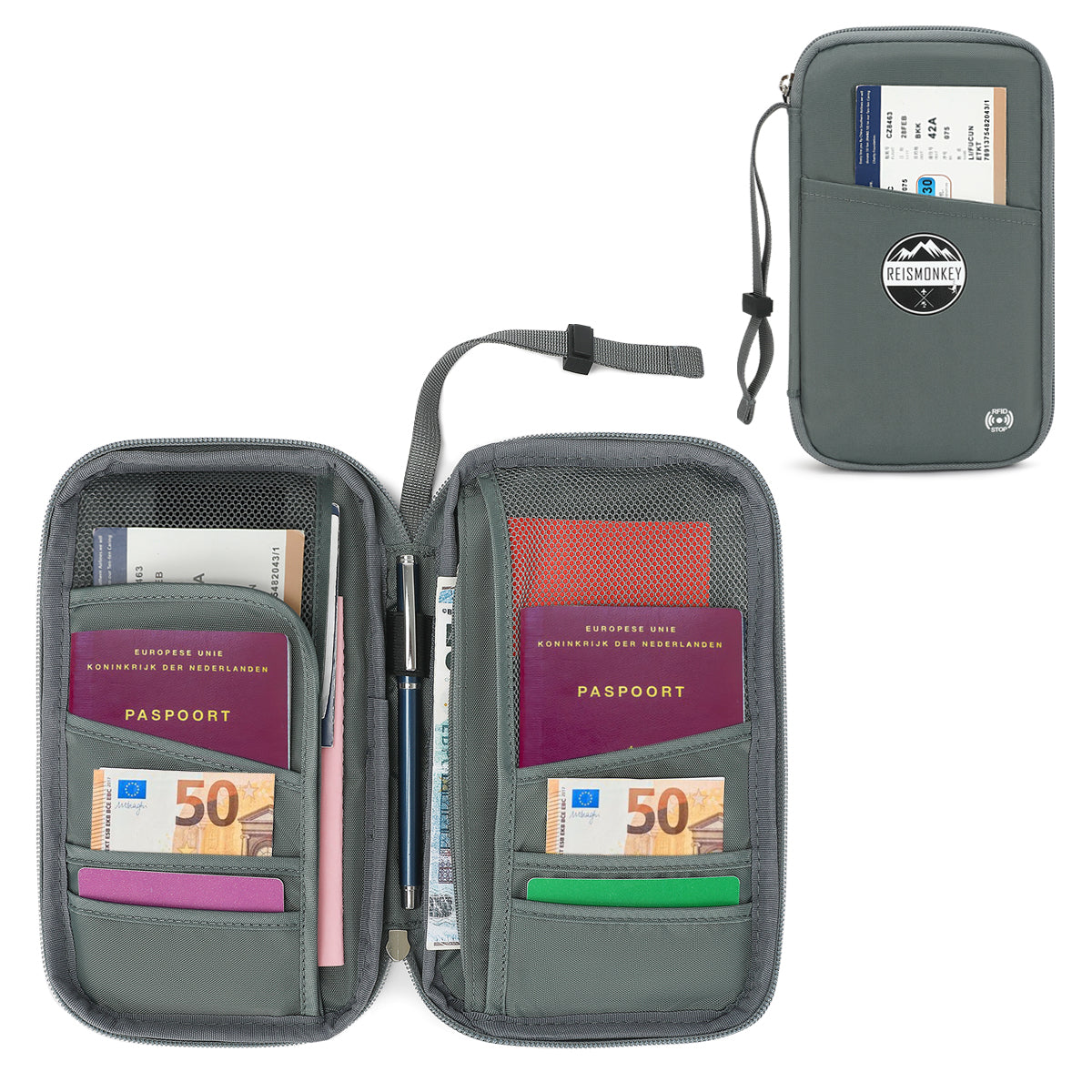 Alles overzichtelijk in één handige reisportemonnee!