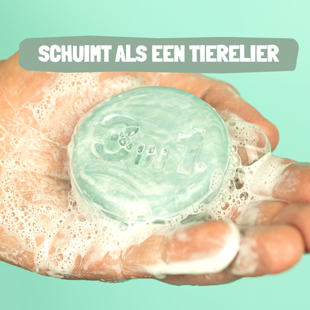 Wil jij voortaan ook minder plastic shampooflessen gebruiken en gaan voor plasticvrij? Met deze 3 in 1 bar help je daaraan mee! Er wordt geen plastic in de verpakking en in het product gebruikt. Naast dat het plasticvrij is, zitten er geen chemicaliën in maar hebben de bars alleen maar natuurlijke en verzorgende ingrediënten. Toch schuimt en ruikt het heerlijk!