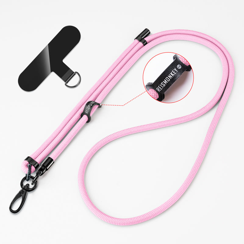 Het telefoonkoord is gemaakt van 7mm dik en hoogwaardig materiaal. De haken zijn van een extra sterke zink metaal dat tot wel 20 kg gewicht kan hebben. Het bevestigingsstuk dat je in de binnenkant van je telefoon doet is één stuk en gemaakt van stevig materiaal. Je hoeft niet bang te zijn dat je telefoon er vanaf zal vallen.